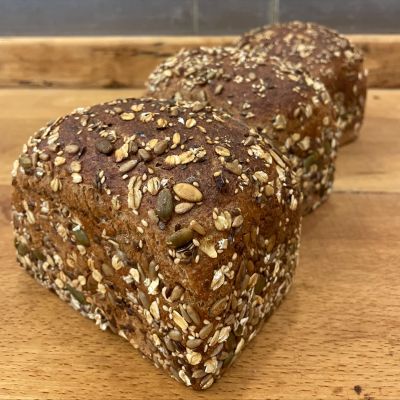 100% Dinkel aus Oberschwabenkorn, Rapsöl, Honig, Dinkelkaramellmalz, Meersalz, belebtes Wasser. 24h Teigführung